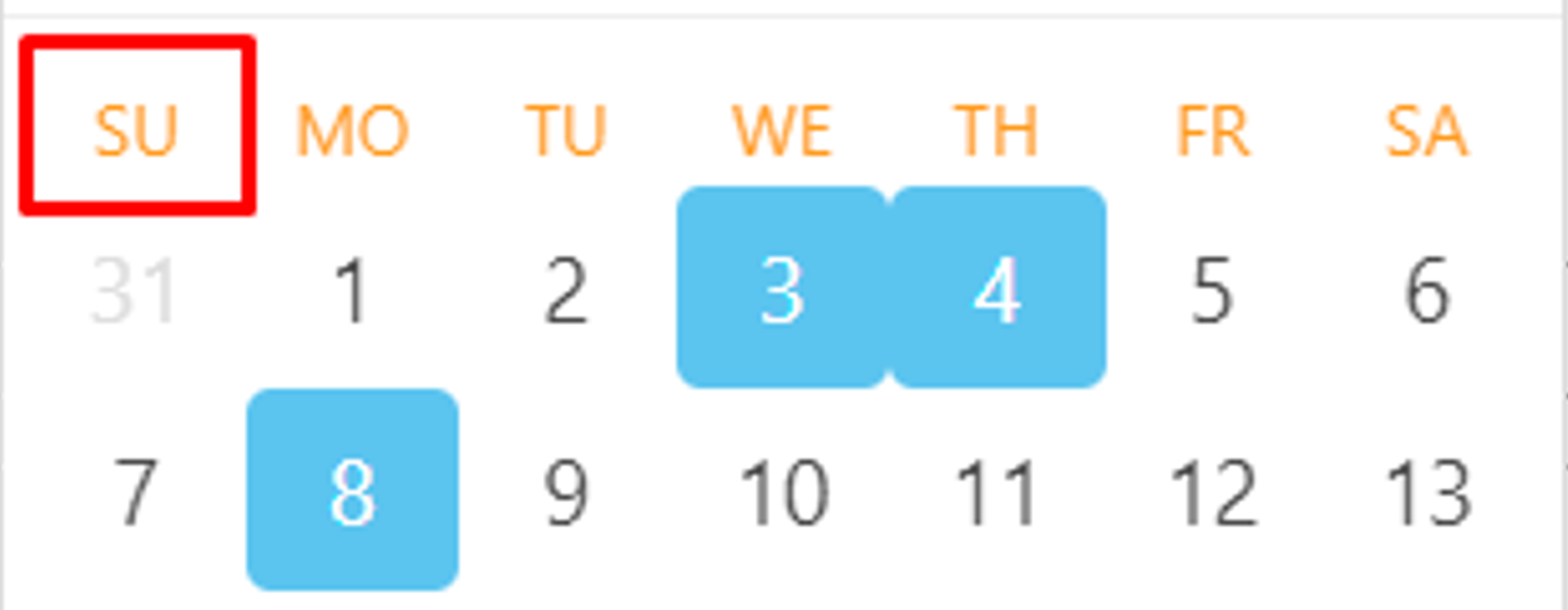 Finally, on preview, the checked days of the week are disabled for selection from the calendar.