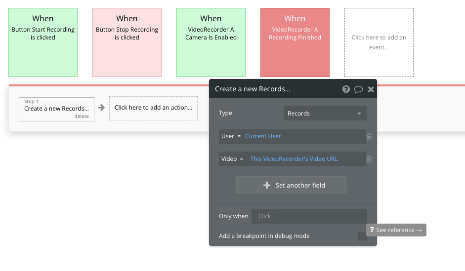 If you want to save the Video File URL to the App Data, use the “Create a new thing” action in the new workflow only. It will give the plugin the needed timing for the Video URL state’s value creation. Thus, use the “Video Recorder - File is uploaded” event in such a use case.