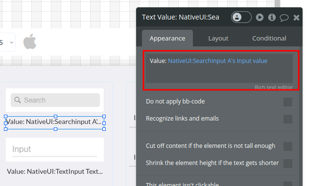 Number of characters | The length of the current text within the input field. This allows other elements in the Bubble application to react to the length of the input, which can be useful for validation or other dynamic behaviors. | number |