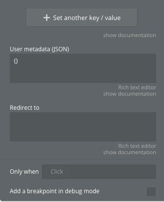 User metadata | A custom data object to store the user’s metadata. These will be automatically merged with the JSON user metadata field. (Stored in the raw_user_meta_data column of the auth.users table.) | Key-Value List | No |
