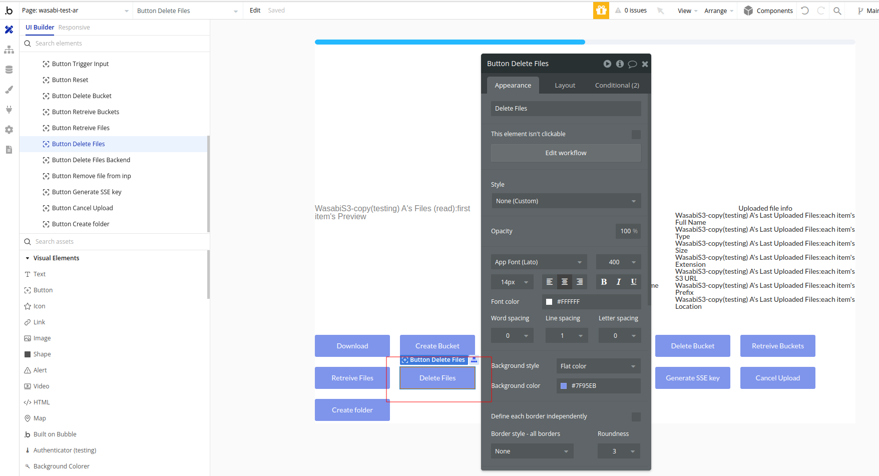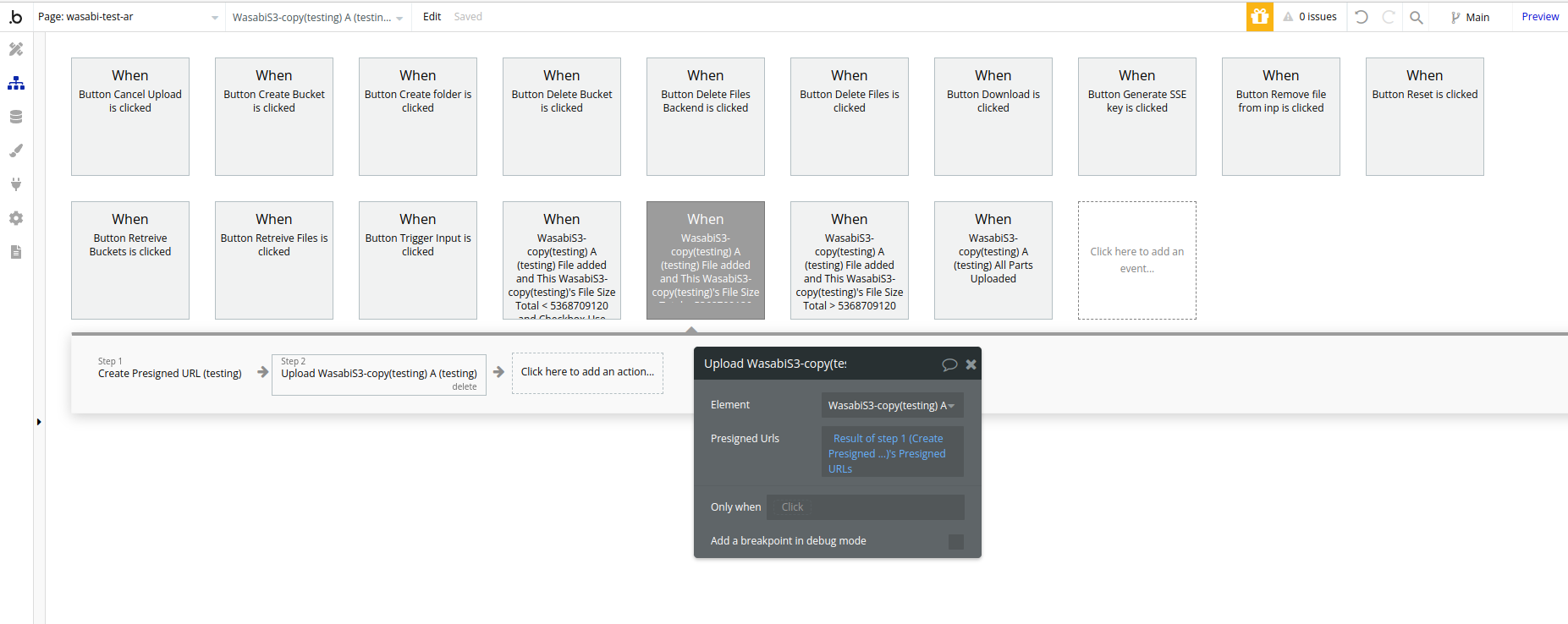 Add the element 'Wasabi S3' on your page and configure any other preferences for uploading.