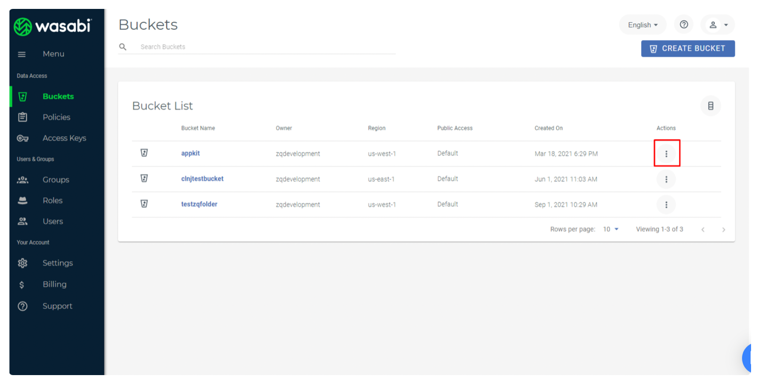 You can make your files private only for those who are trying to access them through a Bubble app. In your WASABI account, open your list of buckets and select the one you want to protect.
